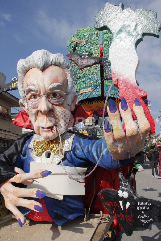 ニュース ライフ 注目の山車はどれ?イタリア・ビアレッジョのカーニバル 2012年2月7日 10:12 発信地:ビアレッジョ/イタリア [ ヨーロッパ イタリア ] このニュースをシェア ‹ › ❮ 4/19 ❯ イタリア・ビアレッジョ(Viareggio)で5日、毎年恒例のカーニバルが開幕し、マリオ・モンティ(Mario Monti)伊首相やニコラ・サルコジ(Nicolas Sarkozy)仏大統領らに似せて作った巨大な山車が通りを練り歩いた。写真は、バンパイアの格好をしたモンティ首相(2012年2月5日撮影)。(c)AFP/FABIO MUZZI 画像作成中 ! 【2月7日 AFP】イタリア・ビアレッジョ(Viareggio)で5日、毎年恒例のカーニバルが開幕し、マリオ・モンティ(Mario Monti)伊首相やニコラ・サルコジ(Nicolas Sarkozy)仏大統領らに似せて作った巨大な山車が通りを練り歩いた。(c)AFP ライフ 一覧へ> メディア・報道関係・法人の方向け 写真・動画 購入のお問合せ>