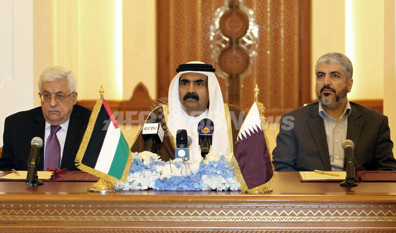 【2月7日 AFP】パレスチナの穏健派ファタハ(Fatah)を率いるマフムード・アッバス(Mahmud Abbas)自治政府議長とイスラム原理主義組織ハマス(Hamas)の政治部門最高指導者ハレド・メシャール(Khaled Meshaal)氏は6日、カタールの首都ドーハ(Doha)で協議し、暫定的な統一政府の首相をアッバス議長が務めることで合意した。