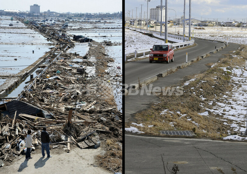 ニュース 社会 【写真特集】東日本大震災、被災地の震災直後と今 2012年3月8日 19:57 発信地:日本 [ アジア・オセアニア 日本 ] このニュースをシェア ‹ › ❮ 36/38 ❯ 東日本大震災の被災地の震災直後の様子と、2012年1月の様子。写真左は宮城県仙台市の津波被災地を見つめる住民(2011年3月14日撮影)。写真右は現在の様子(2012年1月12日撮影)。(c)AFP/TORU YAMANAKA 画像作成中 ! 【2月7日 AFP】東日本大震災の被災地の震災直後の様子と、2012年1月の様子。(c)AFP 社会 一覧へ> メディア・報道関係・法人の方向け 写真・動画 購入のお問合せ>