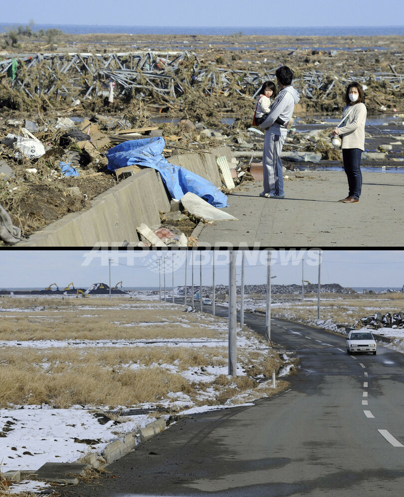 ニュース 社会 【写真特集】東日本大震災、被災地の震災直後と今 2012年3月8日 19:57 発信地:日本 [ アジア・オセアニア 日本 ] このニュースをシェア ‹ › ❮ 32/38 ❯ 東日本大震災の被災地の震災直後の様子と、2012年1月の様子。写真上は福島県南相馬市の津波被災地を見つめる住民(2011年3月12日撮影)。写真下は現在の様子(2012年1月11日撮影)。(c)AFP/KAZUHIRO NOGI/TORU YAMANAKA 画像作成中 ! 【2月7日 AFP】東日本大震災の被災地の震災直後の様子と、2012年1月の様子。(c)AFP 社会 一覧へ> メディア・報道関係・法人の方向け 写真・動画 購入のお問合せ>