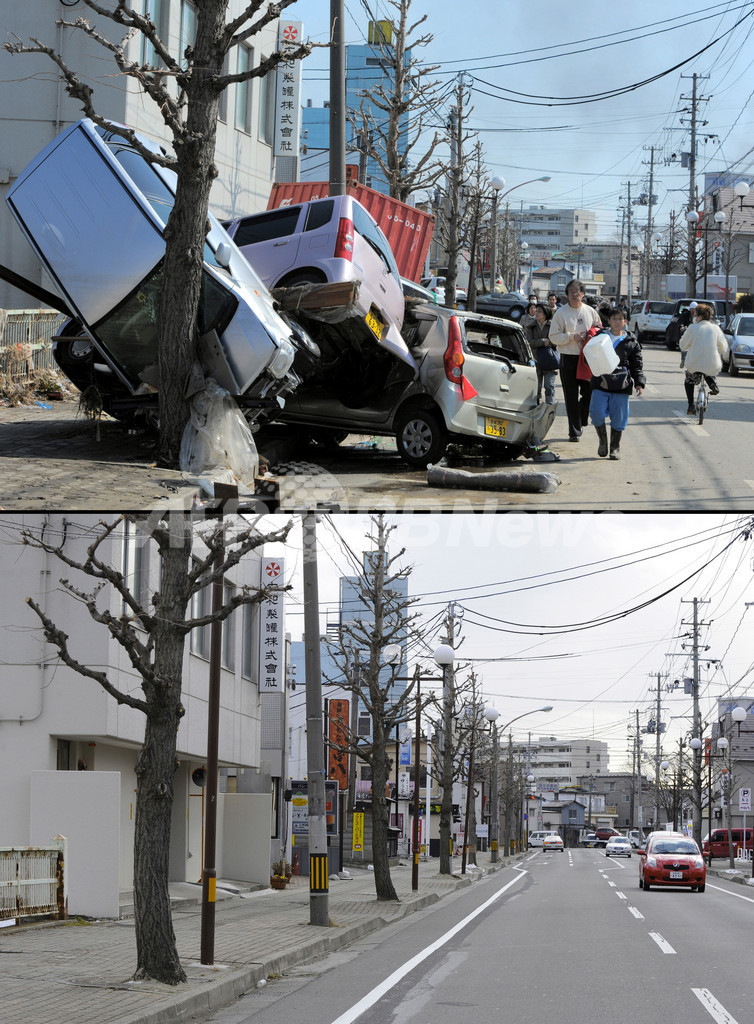 ニュース 社会 【写真特集】東日本大震災、被災地の震災直後と今 2012年3月8日 19:57 発信地:日本 [ アジア・オセアニア 日本 ] このニュースをシェア ‹ › ❮ 21/38 ❯ 東日本大震災の被災地の震災直後の様子と、2012年1月の様子。写真上は宮城県多賀城市で津波に流された車両の横を通る住民(2011年3月13日撮影)。写真下は現在の様子(2012年1月13日撮影)。(c)AFP/KIM JAE-HWAN/TORU YAMANAKA 画像作成中 ! 【2月7日 AFP】東日本大震災の被災地の震災直後の様子と、2012年1月の様子。(c)AFP 社会 一覧へ> メディア・報道関係・法人の方向け 写真・動画 購入のお問合せ>
