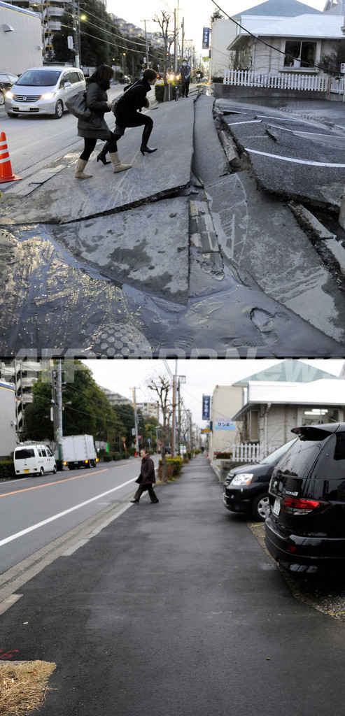 ニュース 社会 【写真特集】東日本大震災、被災地の震災直後と今 2012年3月8日 19:57 発信地:日本 [ アジア・オセアニア 日本 ] このニュースをシェア ‹ › ❮ 2/38 ❯ 東日本大震災の被災地の震災直後の様子と、2012年1月の様子。写真上は千葉県浦安市の地震被害で隆起した道路(2011年3月11日撮影)。写真下は現在の様子(2012年1月21日撮影)。(c)AFP/TOSHIFUMI KITAMURA/TORU YAMANAKA 画像作成中 ! 【2月7日 AFP】東日本大震災の被災地の震災直後の様子と、2012年1月の様子。(c)AFP 社会 一覧へ> メディア・報道関係・法人の方向け 写真・動画 購入のお問合せ>