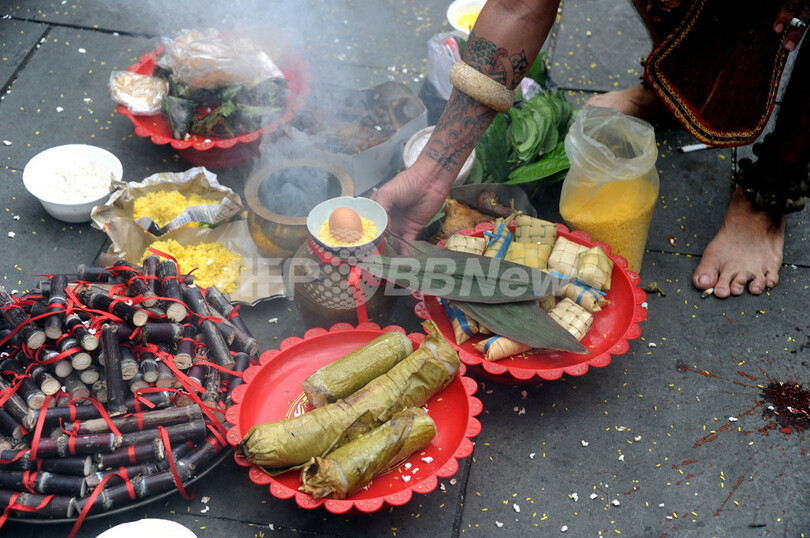 ニュース ライフ 春節の終わり祝うシャーマンの儀式、インドネシア 2012年2月7日 15:06 発信地:ジャカルタ/インドネシア [ アジア・オセアニア インドネシア ] このニュースをシェア ‹ › ❮ 11/13 ❯ インドネシアの首都ジャカルタ(Jakarta)で6日、春節(旧正月、Lunar New Year)を締めくくる「元宵節(Cap Go Meh)」の祭りが開催され、部族のシャーマンたちが登場した。写真は、シャーマンにより置かれた供物(2012年2月6日撮影)。(c)AFP/ADEK BERRY 画像作成中 ! 【2月7日 AFP】インドネシアの首都ジャカルタ(Jakarta)で6日、春節(旧正月、Lunar New Year)を締めくくる「元宵節(Cap Go Meh)」の祭りが開催され、部族のシャーマンたちが登場した。(c)AFP ライフ 一覧へ> メディア・報道関係・法人の方向け 写真・動画 購入のお問合せ>