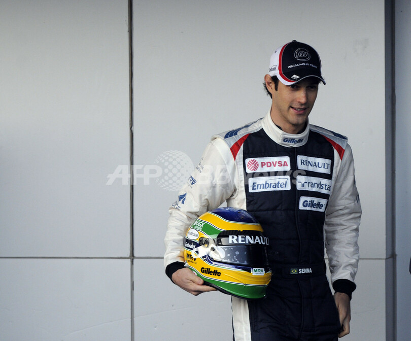 ヘレステストで新型車「FW34」を発表し、会見に出席したウィリアムズ(Williams)のブルーノ・セナ(Bruno Senna、2012年2月7日撮影)。(c)AFP/CRISTINA QUICLER<記事本文へ戻る>