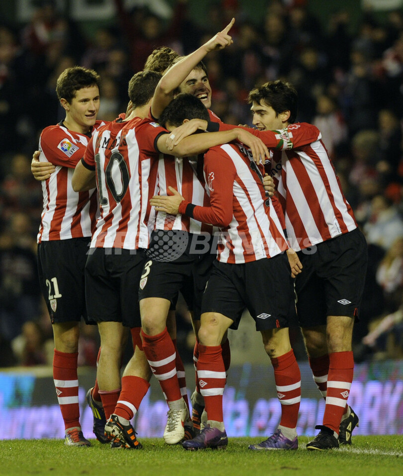 7日に行われた試合でビルバオは、スペイン3部リーグのミランデス(CD Mirandes)を6-2で下し、2試合合計スコア8-3で決勝に駒を進めた。(c)AFP