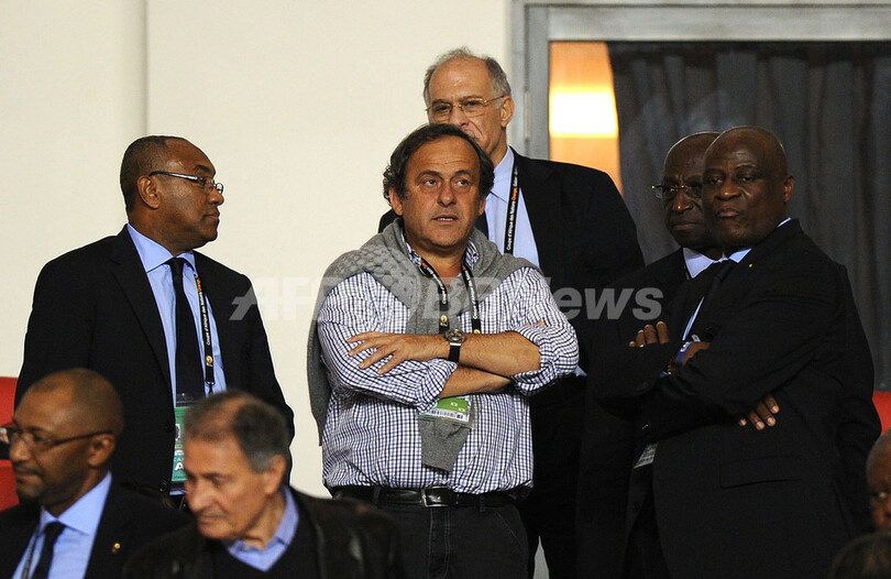 スタンドで試合を観戦する欧州サッカー連盟(UEFA)のミシェル・プラティニ(Michel Platini)会長(2012年2月8日撮影)。(c)AFP/FRANCK FIFE