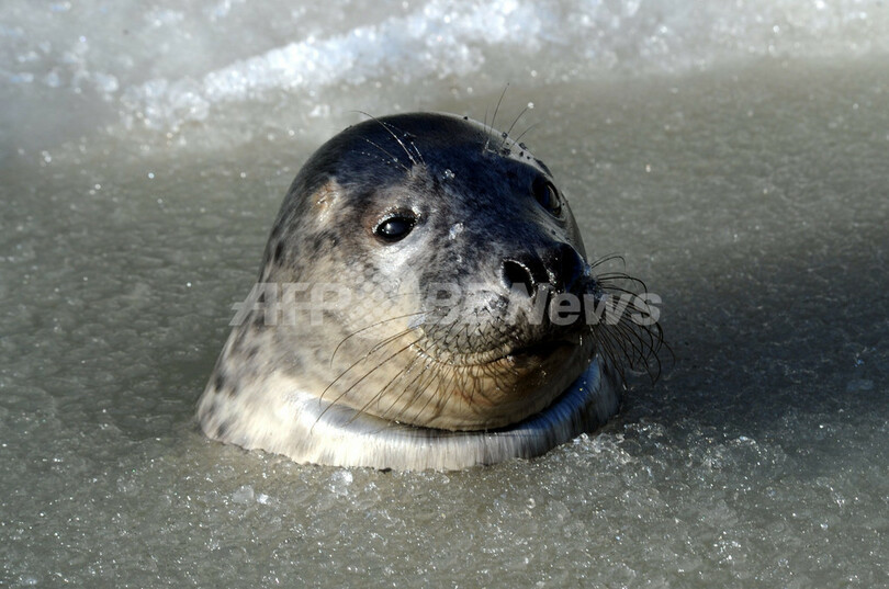 【2月11日 AFP】ドイツ北部のフリードリヒスコーク(Friedrichskoog)で9日、一部が凍結した水面からハイイロアザラシの子供が可愛い顔をのぞかせた。