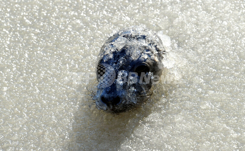 【2月11日 AFP】ドイツ北部のフリードリヒスコーク(Friedrichskoog)で9日、一部が凍結した水面からハイイロアザラシの子供が可愛い顔をのぞかせた。