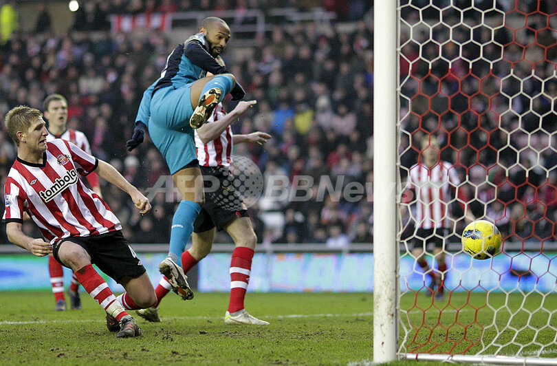 敵地スタジアム・オブ・ライト(Stadium of Light)でアーセナルはティエリ・アンリ(Thierry Henry)が後半ロスタイムに決勝点を挙げ、サンダーランド(Sunderland AFC)を2-1で下した。チェルシーが0-2でエバートン(Everton)に黒星を喫したため、勝ち点43で並んだロンドン(London)の両チームは、総得点数で上回るアーセナルが順位を上回った。