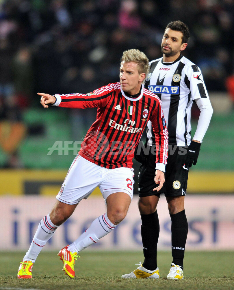 【2月12日 AFP】11-12イタリア・セリエAは11日、第22節の2試合が行われ、ACミラン(AC Milan)が2-1でウディネーゼ(Udinese)に逆転勝利し、暫定首位に立った。