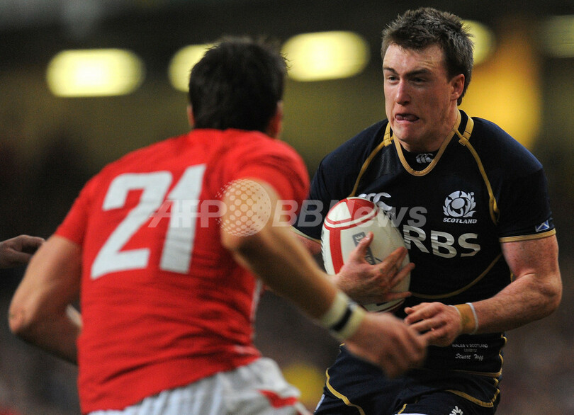 ボールを運ぶスコットランドのスチュアート・ホッグ(Stuart Hogg、右、2012年2月12日撮影)。(c)AFP/ANDREW YATES