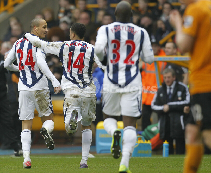 一方、ウェスト・ブロムウィッチ・アルビオン(West Bromwich Albion、WBA)は、ピーター・オデムウィンギ(Peter Odemwingie)のハットトリックの活躍などで地元ライバルのウォルバーハンプトン・ワンダラーズ(Wolverhampton Wanderers)とのアウェイでのブラックカントリー・ダービーを制している。(c)AFP/Steve Griffiths