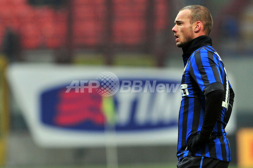 試合に出場するインテルのウェズレイ・スナイデル(Wesley Sneijder、2012年2月12日撮影)。(c)AFP/GIUSEPPE CACACE