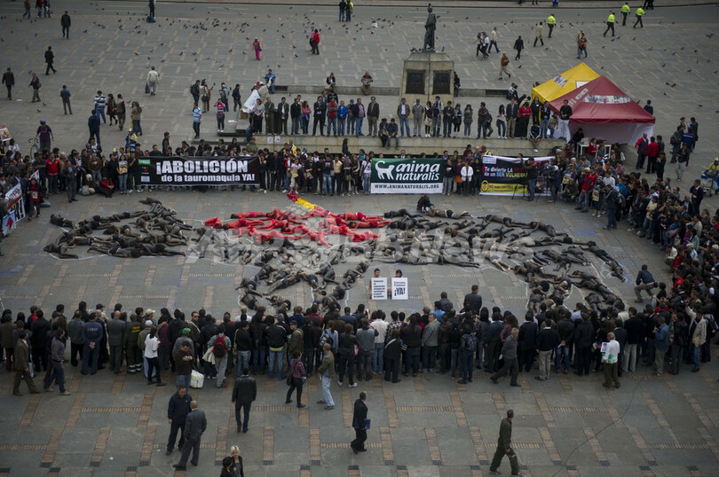 ニュース ライフ 闘牛反対! ボリバル広場に描かれた「牛」、コロンビア 2012年2月14日 17:31 発信地:ボゴタ/コロンビア [ 中南米 コロンビア ] このニュースをシェア ‹ › ❮ 4/11 ❯ 南米コロンビアの首都ボゴタ(Bogota)のボリバル広場(Bolivar Square)で9日、闘牛に反対する抗議行動が行われた。写真は体に色彩を施し抗議行動に参加した人びとによって描かれた牛(2012年2月9日撮影)。(c)AFP/Eitan Abramovich【動画】ボディーペイントで闘牛に抗議(YouTube/AFPBB News公式チャンネル) 画像作成中 ! 【2月14日 AFP】南米コロンビアの首都ボゴタ(Bogota)のボリバル広場(Bolivar Square)で9日、闘牛に反対する抗議行動が行われた。(c)AFP ライフ 一覧へ> メディア・報道関係・法人の方向け 写真・動画 購入のお問合せ>