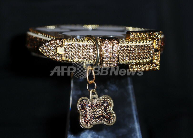 アギーには、スワロフスキーのクリスタルが散りばめられ、骨の形をしたペンダントが付いた「金の首輪(ゴールデン・カラー)」が贈られた。