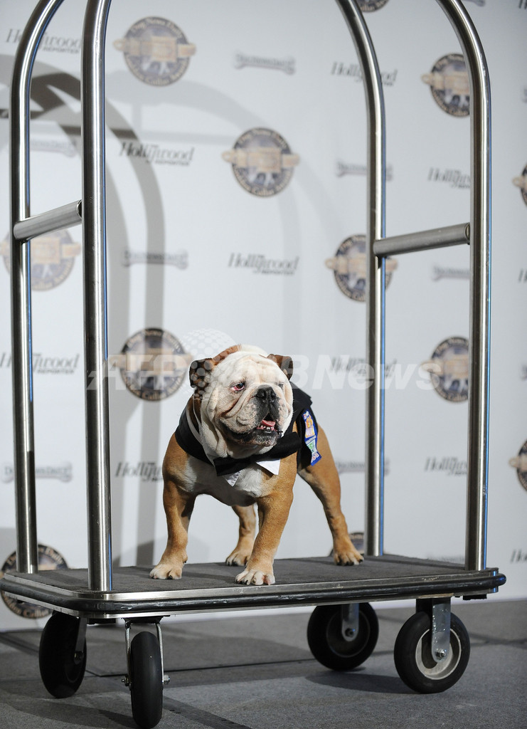 【2月15日 AFP】ハリウッド映画で素晴らしい演技を披露した犬を表彰する第1回ゴールデン・カラー(Golden Collar)賞の授賞式が13日、米ロサンゼルス(Los Angeles)で開催され、アカデミー賞有力候補の『アーティスト(The Artist)』に出演しているジャックラッセルテリアのアギー(Uggie)が最高賞を受賞した。