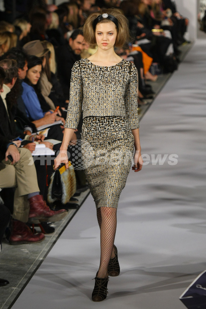 【2月15日 AFP】米・ニューヨーク市内で8日から16日まで12/13年秋冬NYコレクションが開かれている。14日には、「オスカー・デ・ラ・レンタ(Oscar De La Renta)」が新作を発表した。(c)AFP/Getty Images