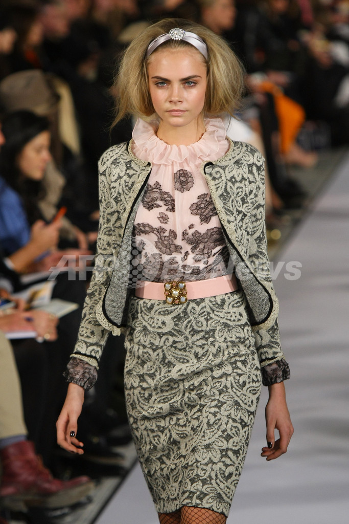【2月15日 AFP】米・ニューヨーク市内で8日から16日まで12/13年秋冬NYコレクションが開かれている。14日には、「オスカー・デ・ラ・レンタ(Oscar De La Renta)」が新作を発表した。(c)AFP/Getty Images