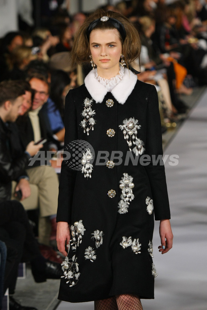 【2月15日 AFP】米・ニューヨーク市内で8日から16日まで12/13年秋冬NYコレクションが開かれている。14日には、「オスカー・デ・ラ・レンタ(Oscar De La Renta)」が新作を発表した。(c)AFP/Getty Images