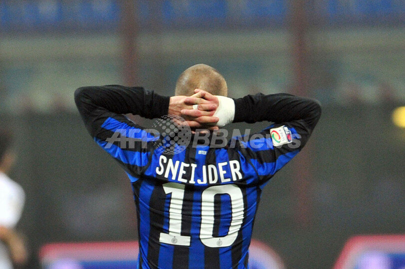 頭を抱えるインテルのウェズレイ・スナイデル(Wesley Sneijder、2012年2月17日撮影)。(c)AFP/GIUSEPPE CACACE