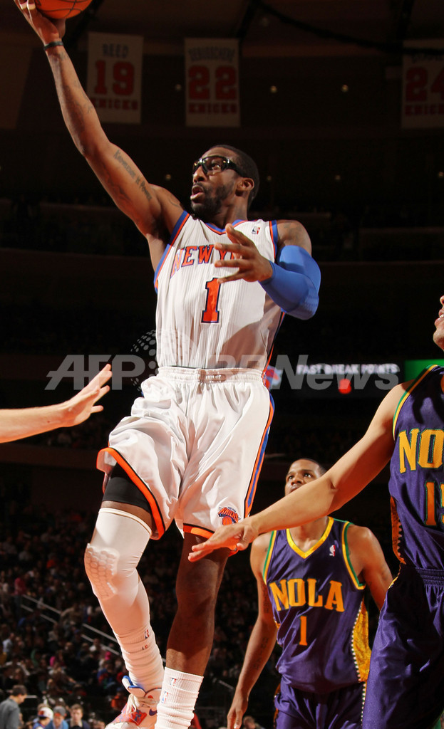 シュートを狙うニックスのアマレ・スタウドマイアー(Amare Stoudemire、2012年2月17日撮影)。(c)AFP/Getty Images/NBAE/Nathaniel S. Butler