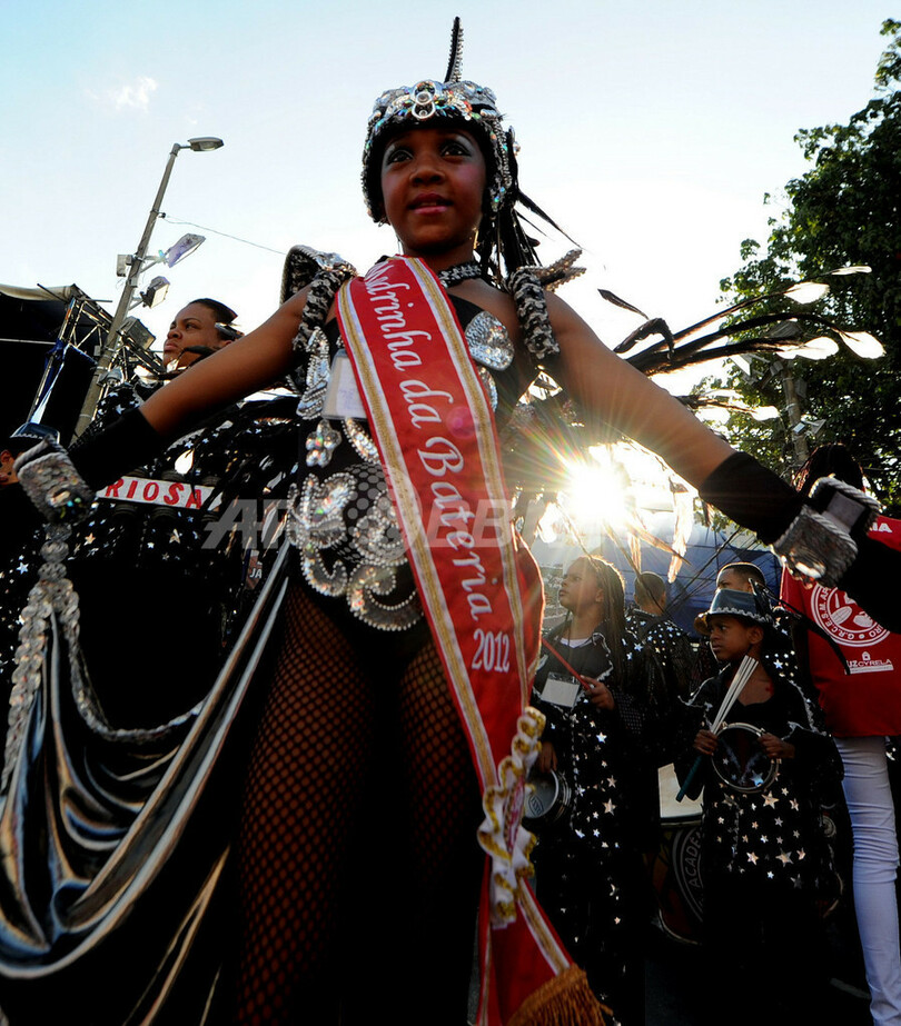 大胆なサンバの祭典は5日間、リオの町を興奮で包む。派手な飾り付けの山車と、サンバのメッカであるサンボドロモ(Sambodromo)スタジアムに集結した肌もあらわなダンサー達がパレードを盛り上げ、カーニバルは19日と20日の夜、最高潮を迎える。(c)AFP/Gerard Aziakou