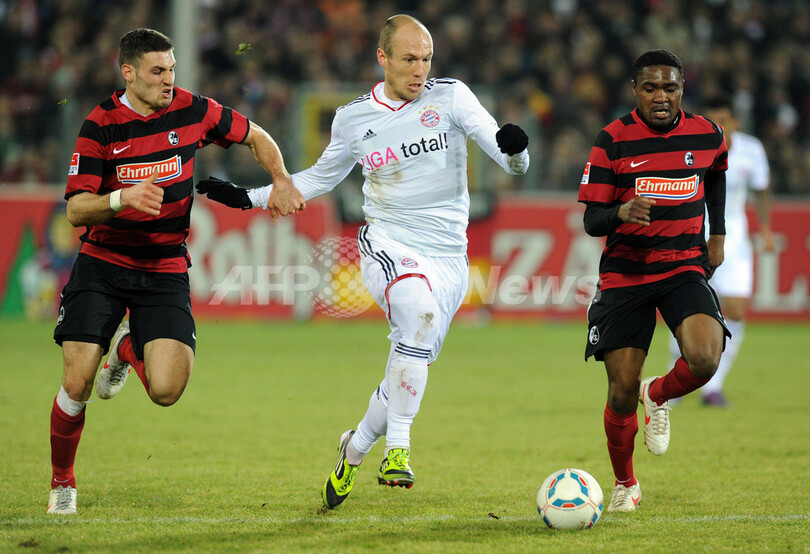 前半戦をSCフライブルクに支配されたバイエルンは、後半からアリエン・ロッベン(Arjen Robben)を投入して立ち直りを見せたものの得点を奪うことができず、首位のドルトムントとの勝ち点差が4に広がり、3位に順位を落とした。