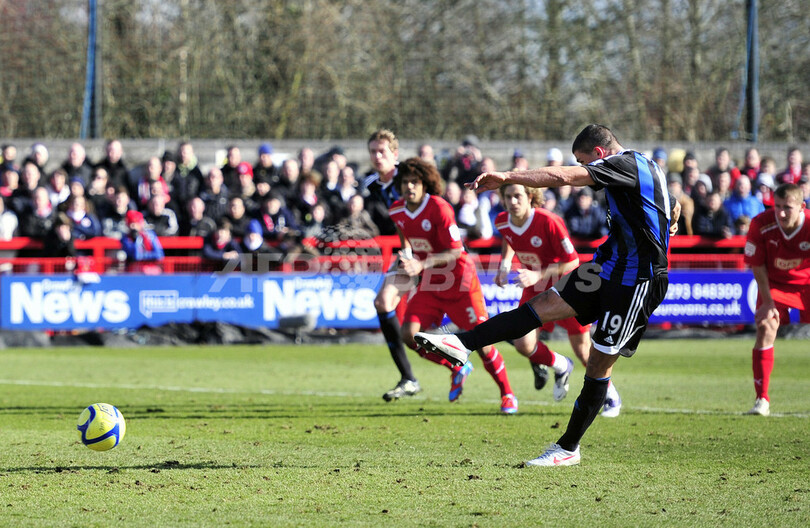 前半42分にペナルティーキック(PK)で先制ゴールを決めるジョナサン・ウォルタース(Jonathan Walters、2012年2月19日撮影)。(c)AFP/GLYN KIRK