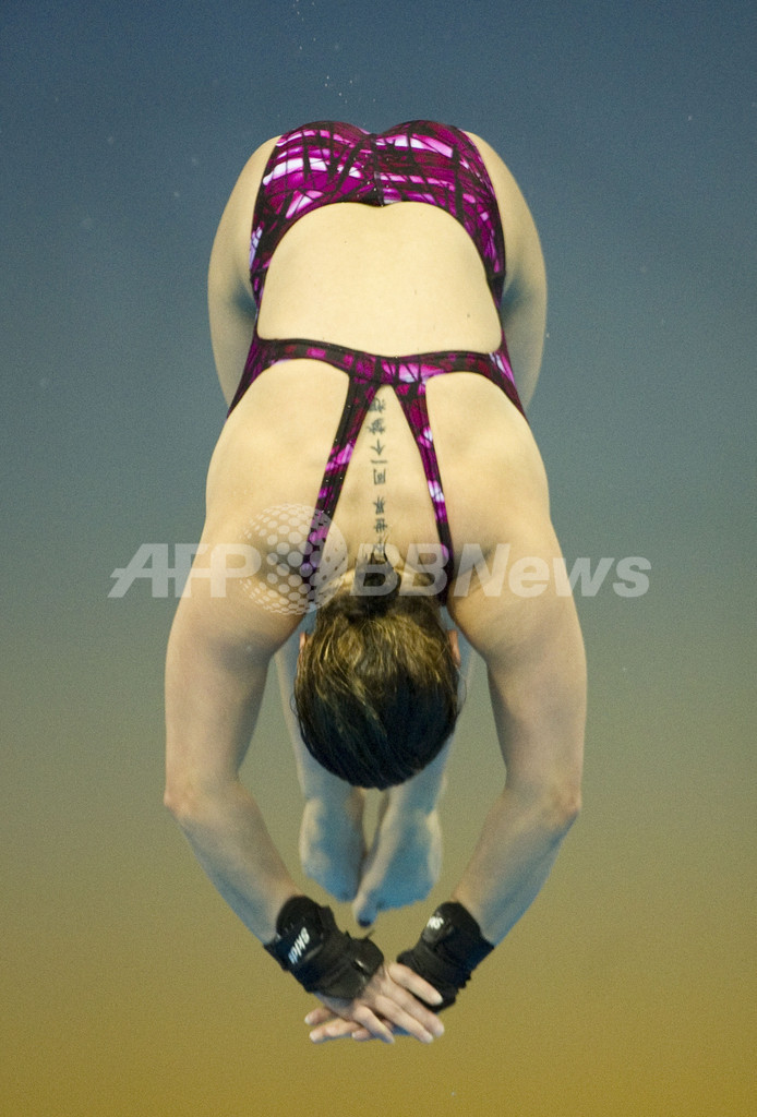 女子10メートル高飛び込み準決勝に臨むカナダの選手(2012年2月21日撮影)。(c)AFP/MIGUEL MEDINA