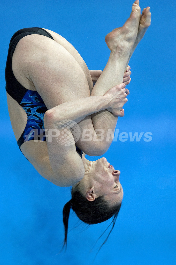 女子3メートル板飛び込み予選に臨む英国の選手(2012年2月23日撮影)。(c)AFP/BEN STANSALL