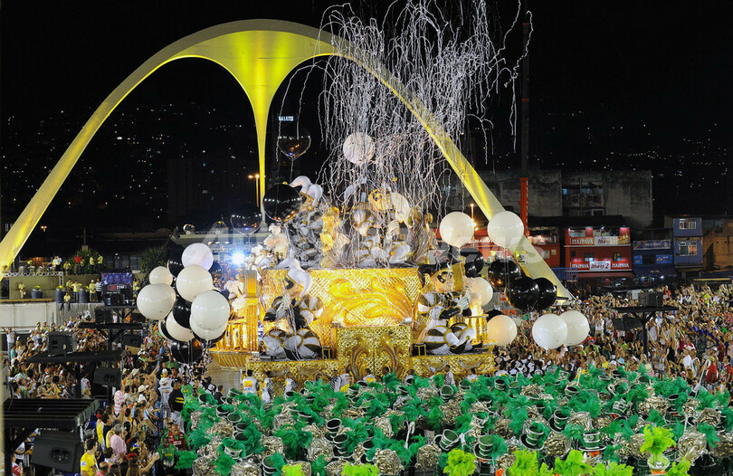 カーニバル専用会場サンボドロモ(Sambadrome)には7万人の観衆が集まり、裸に近い衣装姿のダンシングクイーンたちに、想像力豊かな山車(だし)、数千人規模のエキストラたちが登場した。