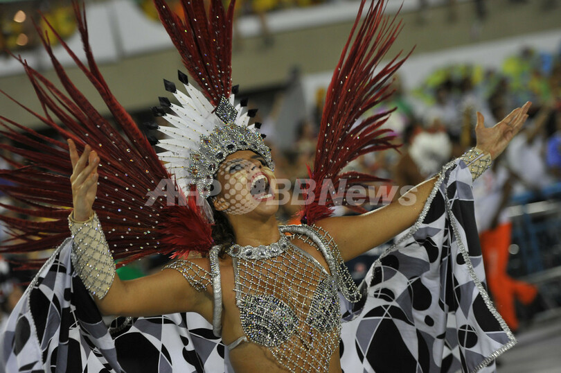 【2月21日 AFP】ブラジル・リオデジャネイロ(Rio de Janeiro)のカーニバルは2日目の20日、最高潮を迎えた。 カーニバル専用会場サンボドロモ(Sambadrome)には7万人の観衆が集まり、裸に近い衣装姿のダンシングクイーンたちに、想像力豊かな山車(だし)、数千人規模のエキストラたちが登場した。リオのカーニバルは18日夜に花火とともに開幕した。カーニバル参加者は開幕の数日前から路上でパーティーを繰り広げていた。(c)AFP