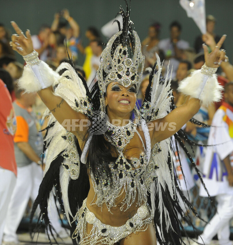 【2月21日 AFP】ブラジル・リオデジャネイロ(Rio de Janeiro)のカーニバルは2日目の20日、最高潮を迎えた。 カーニバル専用会場サンボドロモ(Sambadrome)には7万人の観衆が集まり、裸に近い衣装姿のダンシングクイーンたちに、想像力豊かな山車(だし)、数千人規模のエキストラたちが登場した。リオのカーニバルは18日夜に花火とともに開幕した。カーニバル参加者は開幕の数日前から路上でパーティーを繰り広げていた。(c)AFP