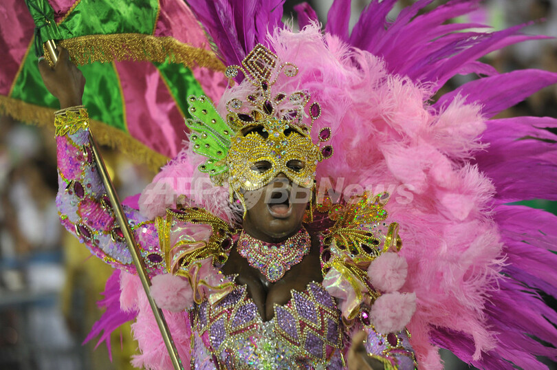【2月21日 AFP】ブラジル・リオデジャネイロ(Rio de Janeiro)のカーニバルは2日目の20日、最高潮を迎えた。 カーニバル専用会場サンボドロモ(Sambadrome)には7万人の観衆が集まり、裸に近い衣装姿のダンシングクイーンたちに、想像力豊かな山車(だし)、数千人規模のエキストラたちが登場した。リオのカーニバルは18日夜に花火とともに開幕した。カーニバル参加者は開幕の数日前から路上でパーティーを繰り広げていた。(c)AFP