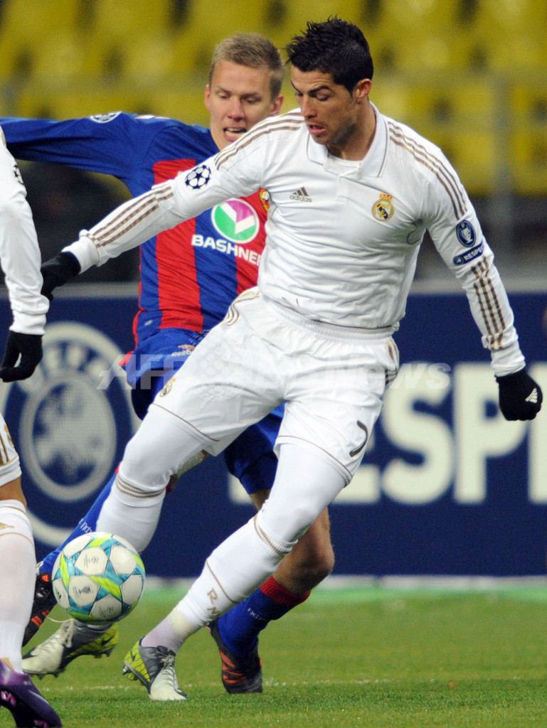 その後、ロナウドに訪れた2度の得点機を無失点で切り抜けたCSKAモスクワは、迎えた後半ロスタイムにアレクセイ・ベレズツキ(Aleksei Berezutski)の折り返しからウェルンブロームが同点ゴールを決め、大会9度の優勝を誇るレアル・マドリードを相手に1-1の引き分けに持ち込んだ。(c)AFP/Tom Williams