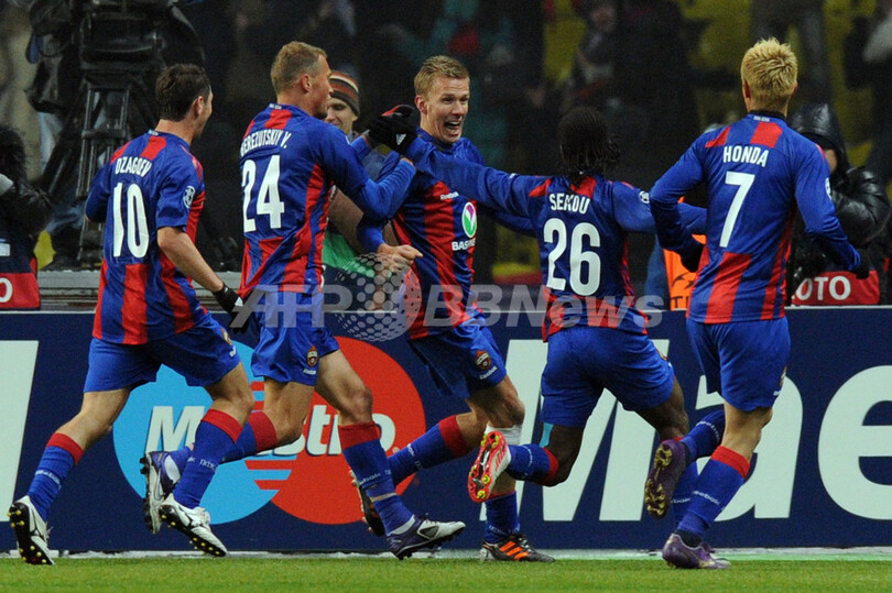 その後、ロナウドに訪れた2度の得点機を無失点で切り抜けたCSKAモスクワは、迎えた後半ロスタイムにアレクセイ・ベレズツキ(Aleksei Berezutski)の折り返しからウェルンブロームが同点ゴールを決め、大会9度の優勝を誇るレアル・マドリードを相手に1-1の引き分けに持ち込んだ。(c)AFP/Tom Williams