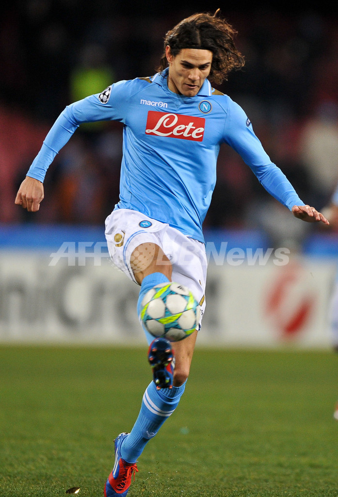 ボールをコントロールするナポリのエディンソン・カヴァーニ(Edinson Cavani、2012年2月21日撮影)。(c)AFP/ANDREAS SOLARO