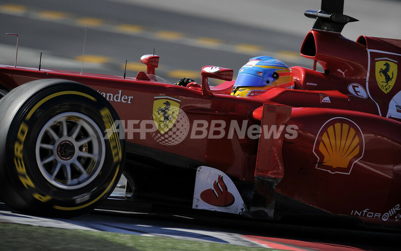 テスト走行で4番手となるベストラップ1分23秒180(87周)を記録したフェラーリ(Ferrari)のフェルナンド・アロンソ(Fernando Alonso、2012年2月22日撮影)。(c)AFP/LLUIS GENE