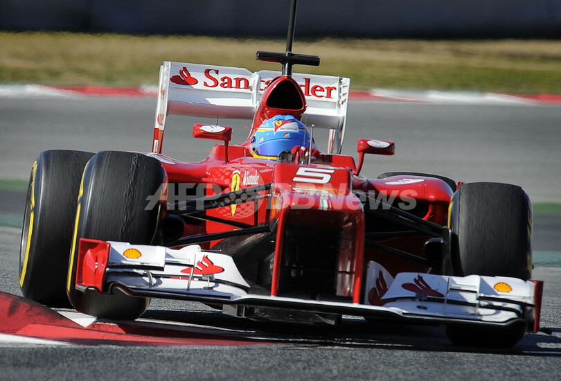 テスト走行で4番手となるベストラップ1分23秒180(87周)を記録したフェラーリ(Ferrari)のフェルナンド・アロンソ(Fernando Alonso、2012年2月22日撮影)。(c)AFP/LLUIS GENE