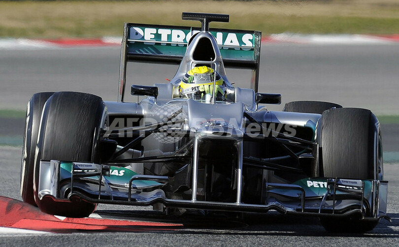 テスト走行で7番手となるベストラップ1分24秒555(82周)を記録したメルセデスAMG(Mercedes AMG)のニコ・ロズベルグ(Nico Rosberg、2012年2月22日撮影)。(c)AFP/LLUIS GENE