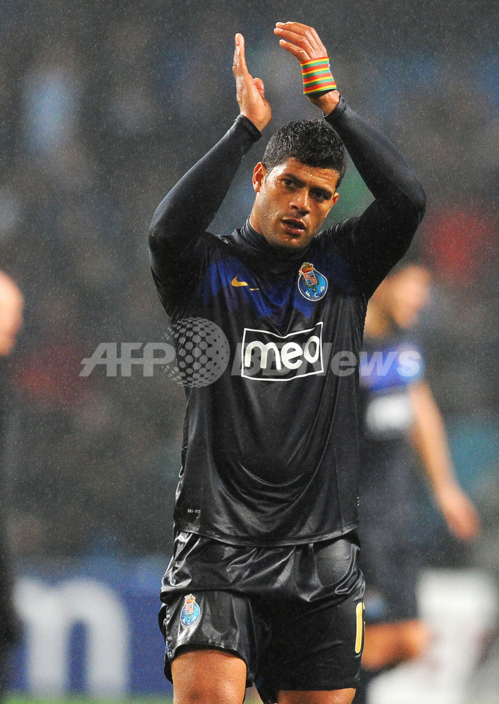 試合後、観衆の声援に応えるFCポルトのフッキ(Hulk、2012年2月22日撮影)。(c)AFP/ANDREW YATES