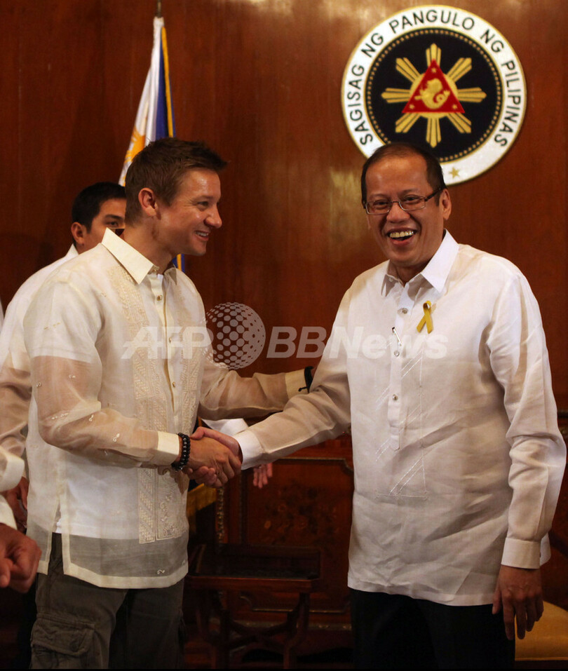 ニュース ライフ 米俳優ジェレミー・レナー、アキノ比大統領を表敬訪問 2012年2月22日 18:57 発信地:マニラ/フィリピン [ アジア・オセアニア フィリピン ] このニュースをシェア ‹ › ❮ 3/3 ❯ フィリピンの首都マニラ(Manila)で、同国のベニグノ・アキノ(Benigno Aquino)大統領(右)を表敬訪問した米俳優ジェレミー・レナー(Jeremy Renner、2012年2月22日撮影)。(c)AFP/GIL NARTEA/MALACANANG PHOTO BUREAU 画像作成中 ! 【2月22日 AFP】米俳優ジェレミー・レナー(Jeremy Renner)が22日、フィリピンの首都マニラ(Manila)で、同国のベニグノ・アキノ(Benigno Aquino)大統領を表敬訪問した。レナーが主演を引き継いだ「ボーン」シリーズ最新作『ボーン・レガシー(原題、Bourne Legacy)』は、フィリピンでの数週間にわたる撮影を終えている。(c)AFP ライフ 一覧へ> メディア・報道関係・法人の方向け 写真・動画 購入のお問合せ>