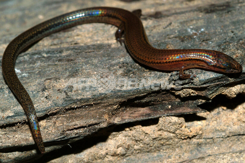 【2月23日 AFP】カンボジア北東部ラタナキリ(Rattanakiri)州の熱帯雨林で、珍しい風貌を持つトカゲの新種を発見したと、米自然保護団体コンサベーション・インターナショナル(Conservation International)が22日発表した。尻尾は胴体よりもはるかに長く、四肢は極端に短く、光を屈折するうろこで覆われた体は太陽の光が当たると虹色に輝いて見えるという。