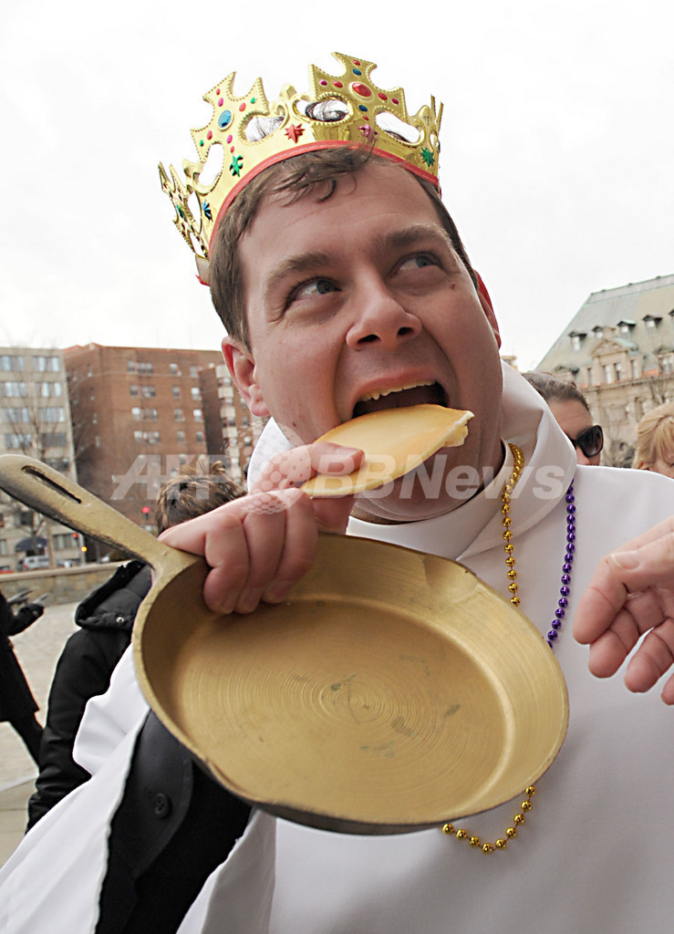 ニュース ライフ こぼれ話 おっとっと!謝肉祭の最後飾るパンケーキ競争、米国 2012年2月23日 12:02 発信地:ワシントンD.C./米国 [ 北米 米国 ] このニュースをシェア ‹ › ❮ 14/14 ❯ キリスト教の謝肉祭の最終日「マルディグラ」を迎えた21日、米ワシントンD.C.のワシントン大聖堂(Washington National Cathedral)では、英国のマルディグラの伝統に則った恒例の「パンケーキ・レース」が行われた。司祭たちも加わり、参加者たちはフライパンでパンケーキをひっくり返しながら走るレースを競った。英国ではマルディグラを「パンケーキ・デー」とも呼ぶ(2012年2月21日撮影)。(c)AFP/Karen BLEIER 画像作成中 ! 【2月23日 AFP】キリスト教の謝肉祭の最終日「マルディグラ」を迎えた21日、米ワシントンD.C.のワシントン大聖堂(Washington National Cathedral)では、英国のマルディグラの伝統に則った恒例の「パンケーキ・レース」が行われた。(c)AFP ライフ 一覧へ> メディア・報道関係・法人の方向け 写真・動画 購入のお問合せ>