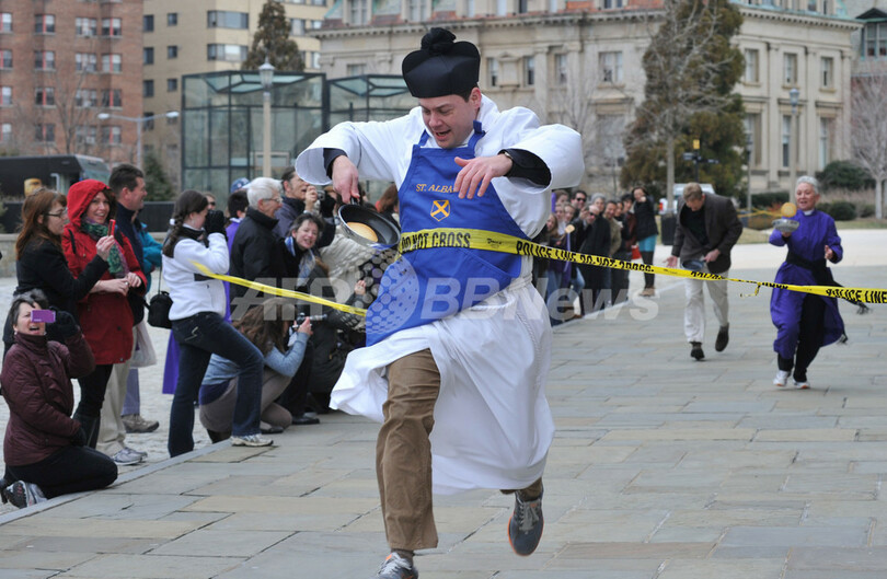 ニュース ライフ こぼれ話 おっとっと!謝肉祭の最後飾るパンケーキ競争、米国 2012年2月23日 12:02 発信地:ワシントンD.C./米国 [ 北米 米国 ] このニュースをシェア ‹ › ❮ 5/14 ❯ キリスト教の謝肉祭の最終日「マルディグラ」を迎えた21日、米ワシントンD.C.のワシントン大聖堂(Washington National Cathedral)では、英国のマルディグラの伝統に則った恒例の「パンケーキ・レース」が行われた。司祭たちも加わり、参加者たちはフライパンでパンケーキをひっくり返しながら走るレースを競った。英国ではマルディグラを「パンケーキ・デー」とも呼ぶ(2012年2月21日撮影)。(c)AFP/Karen BLEIER 画像作成中 ! 【2月23日 AFP】キリスト教の謝肉祭の最終日「マルディグラ」を迎えた21日、米ワシントンD.C.のワシントン大聖堂(Washington National Cathedral)では、英国のマルディグラの伝統に則った恒例の「パンケーキ・レース」が行われた。(c)AFP ライフ 一覧へ> メディア・報道関係・法人の方向け 写真・動画 購入のお問合せ>