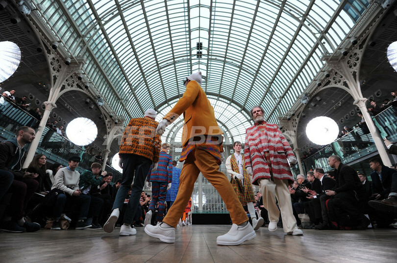 【2月23日 AFP】英ロンドン市内で17日から22日まで12/13年秋冬ロンドンコレクションが開かれた。22日には合同ショー「マン(MAN)」が開催され、「エジ アンド サム(Agi & Sam)」「ショーン・サムソン(Shaun Samson)」「アストリッド アンデルセン(Astrid Andersen)」ら新進ブランドが新作を発表した。(c)AFP