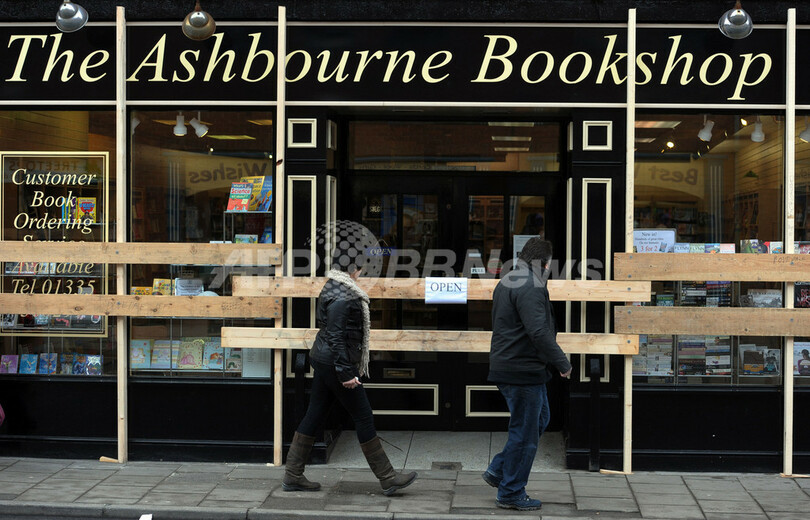 写真は、大会に備えて防護柵を打ち付けた書店(2012年2月21日撮影)。(c)AFP/PAUL ELLIS