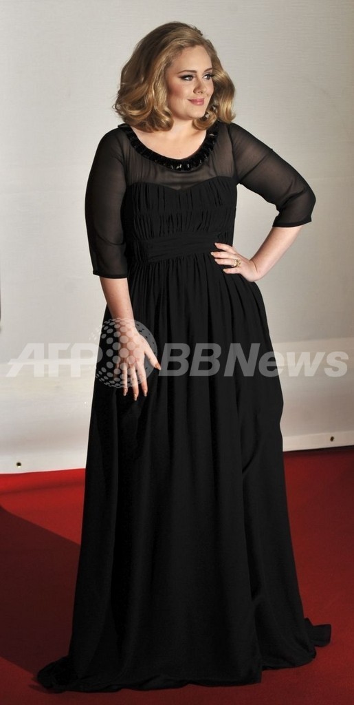 最優秀女性ソロ・アーティストと最優秀アルバムの2部門を受賞したアデル(Adele)は、シースルーの袖と胸元が印象的な「バーバリー(Burberry)」のブラック・ロングドレスでシックな雰囲気にまとめた。