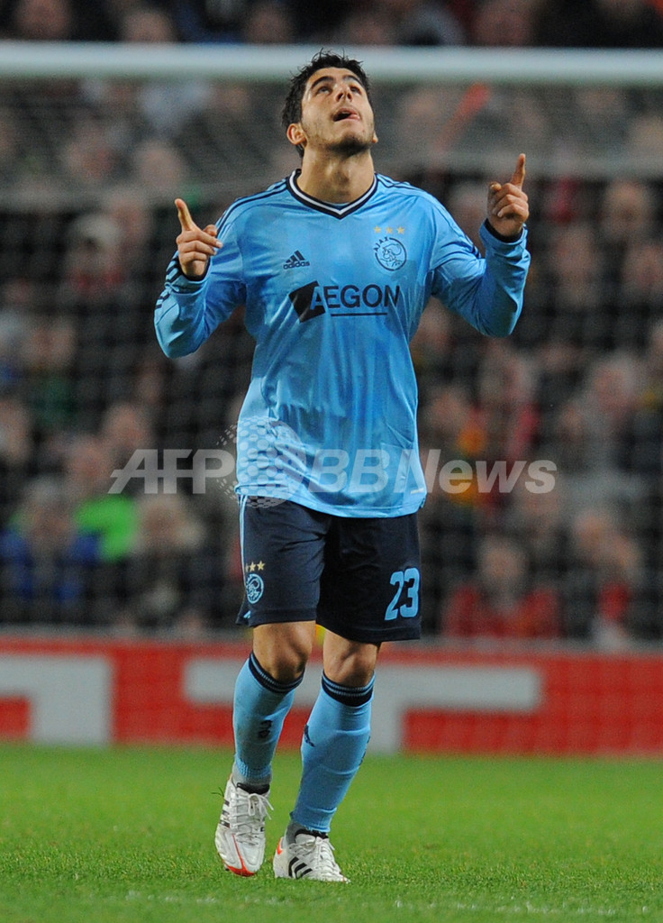前半37分に同点ゴールを決めて歓喜するアヤックスのアラス・オズビリズ(Aras Ozbiliz、2012年2月23日撮影)。(c)AFP/ANDREW YATES
