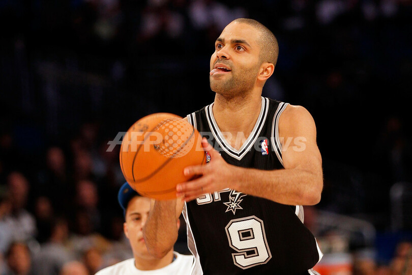 タコベル・スキルズ・チャレンジ(2012 Taco Bell Skills Challenge)に出場したサンアントニオ・スパーズ(San Antonio Spurs)のトニー・パーカー(Tony Parker、2012年2月25日撮影)。(c)AFP/Getty Images/Mike Ehrmann